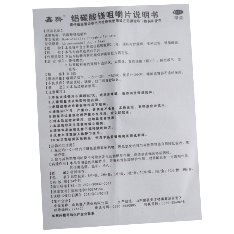 鑫齐   铝碳酸镁咀嚼片  0.5g*8s*3板