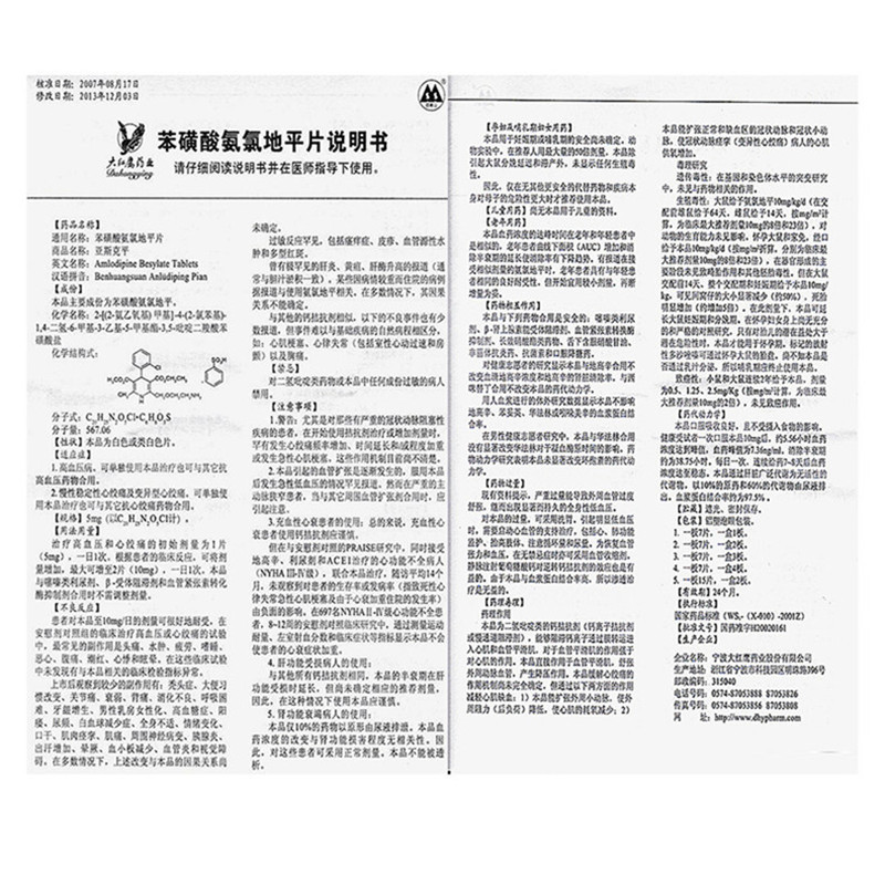 亚斯克平   苯磺酸氨氯地平片  5mg*7s*4板