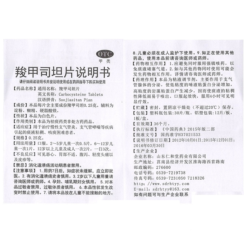 翔宇乐康   羧甲司坦片  0.25g*12s