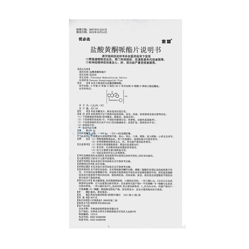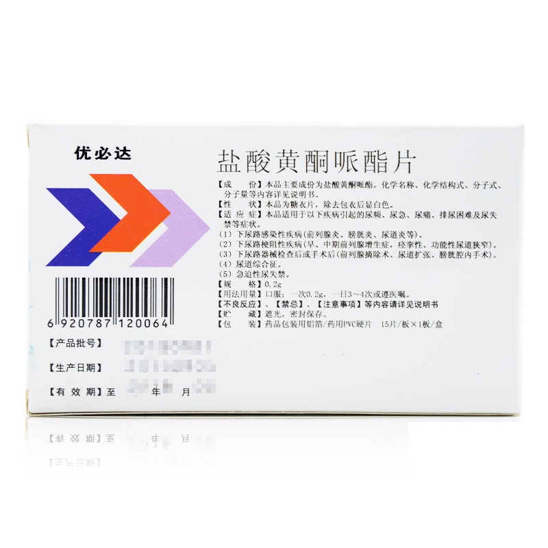 优必达   盐酸黄酮哌酯片  0.2g*15s